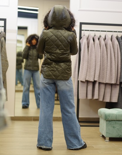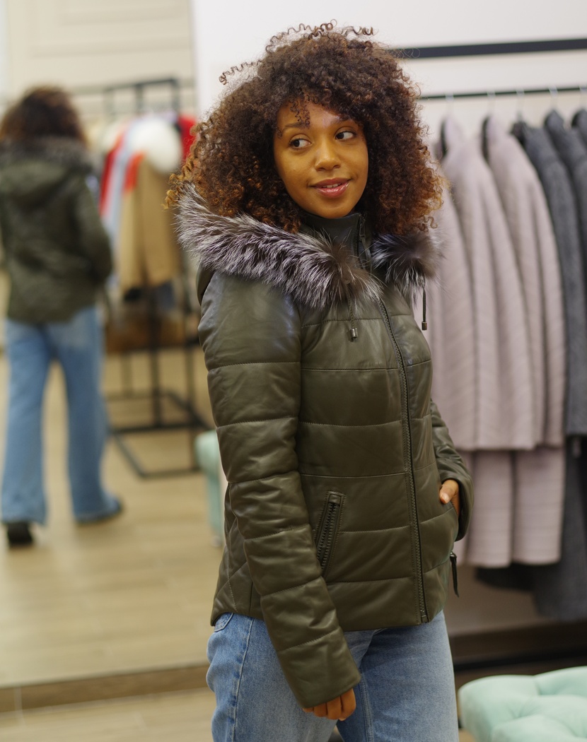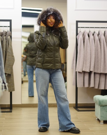 Пуховик шкіра зелений