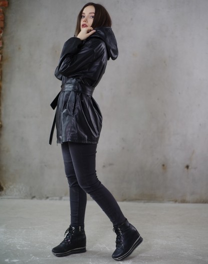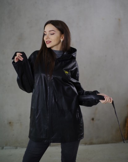 Куртка жіноча весна-осінь шкіряна (чорна)