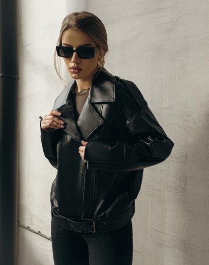 Жіноча шкіряна куртка-косуха (чорна)