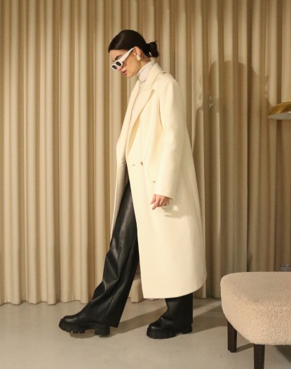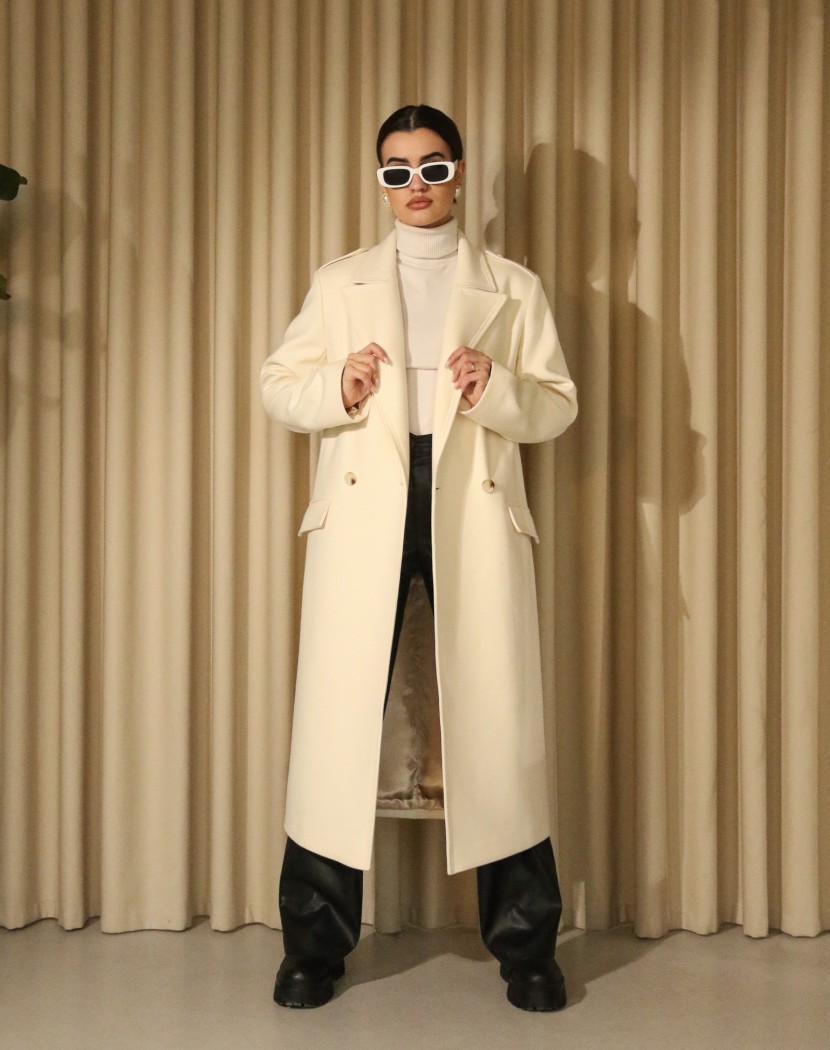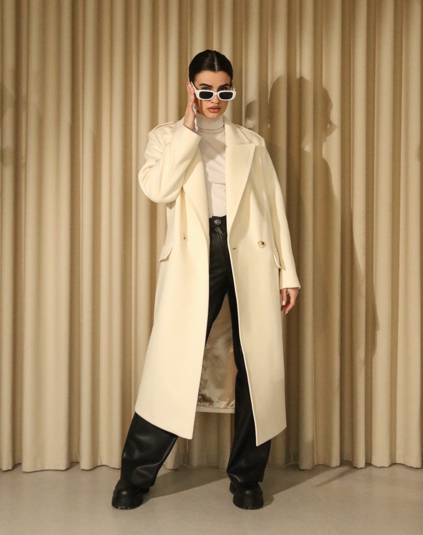 Колір теж грає важливу роль у створенні образу. Класичний варіант представлений на моделі — білий. Замовити пальто турецький кашемір можна також в бежевому кольорі у нас на сайті.