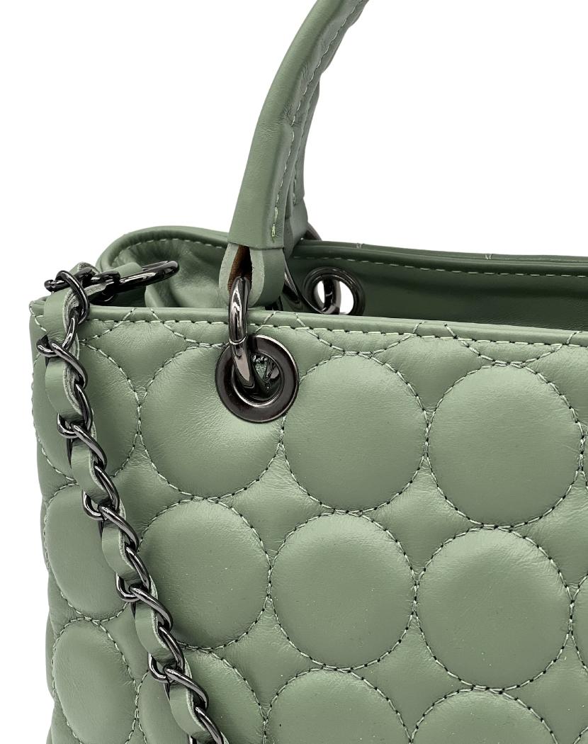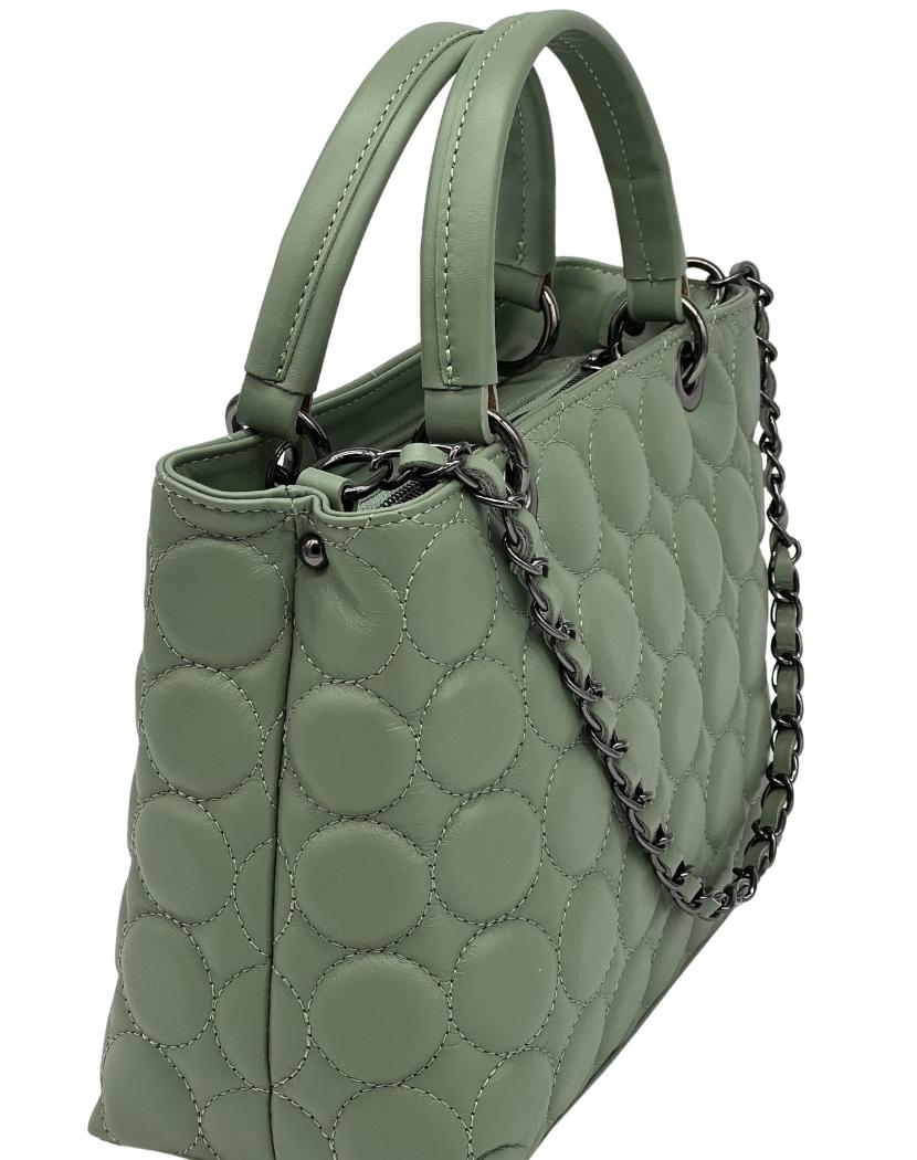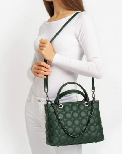 Шкіряна жіноча сумка з тисненням (зелена)