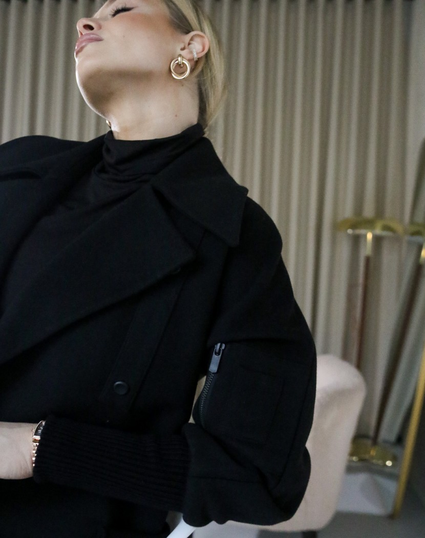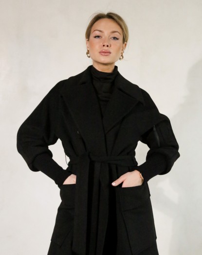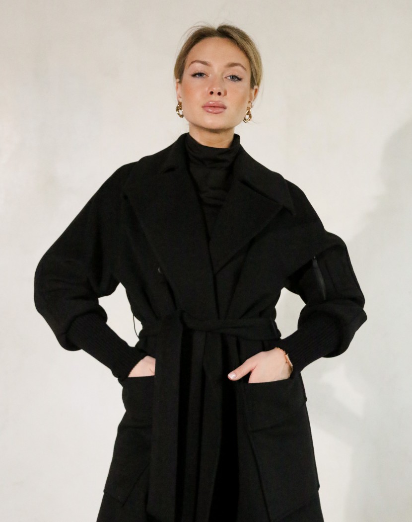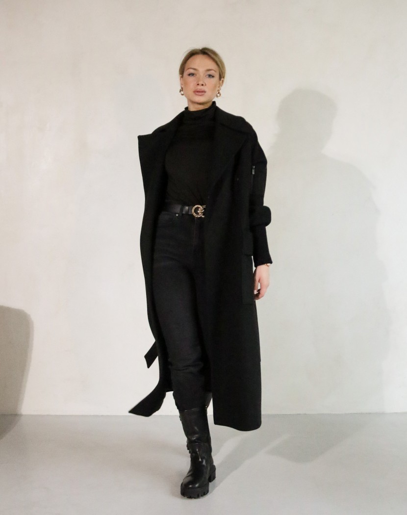 Кашемір — це натуральна вовняна тканина, виготовлена з хутра кашмірських кіз. Вона відома своєю ніжністю, м'якістю та довговічністю. Ці матеріали чудово поєднуються з чорним кольором, створюючи розкішний і елегантний вигляд. Пальто з кашеміру можна використовувати в різних ситуаціях — від офісу до вечірнього виходу. Воно додає стильності та розкоші до будь-якого образу і підходить до різних стилів одягу. Крім того, ці матеріали мають властивість добре тримати тепло та є чудовим варіантом для холодних зимових днів. Воно зігріває тіло і захищає від холоду, забезпечуючи комфорт і затишок.