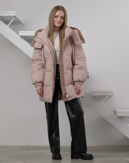 Пуховик нейлоновий жіночий з еко-наповнювачем (рожевий)