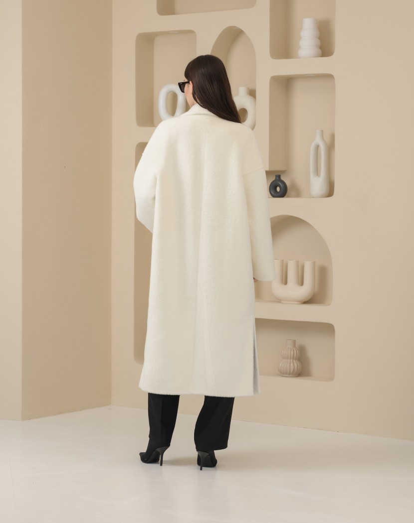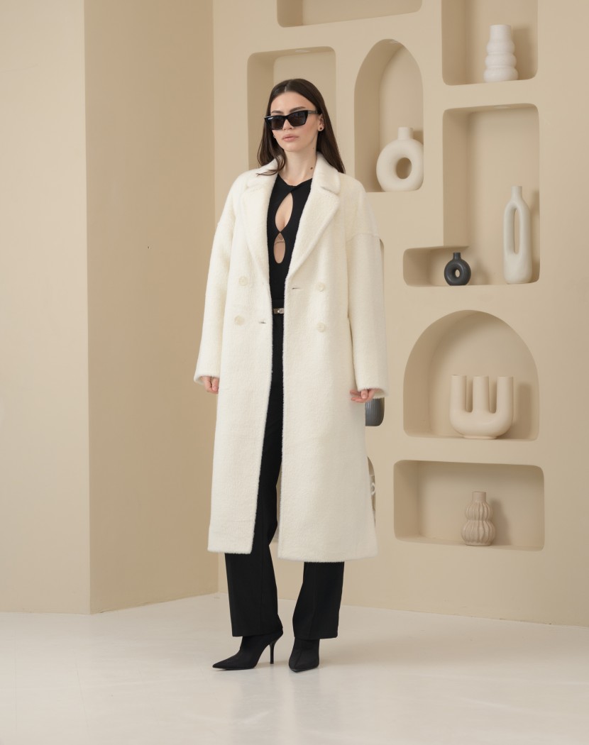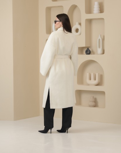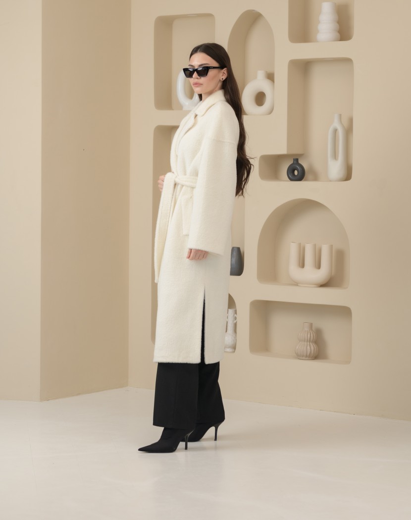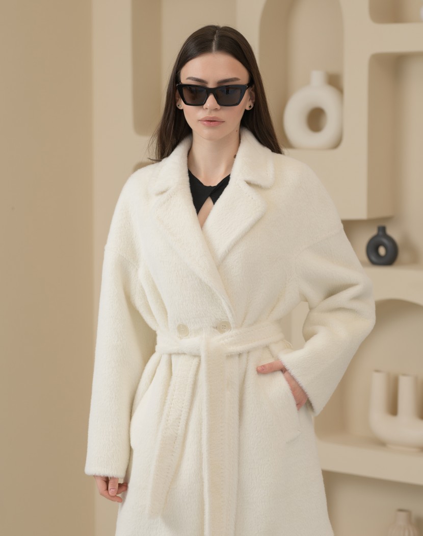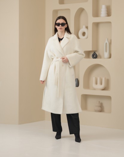 ApplePayОбираючи пальто на весну чи осінь варто приглянутись до того аби купити біле пальто з альпаки. Дана модель має мінімалістичний дизайн, виконане у світлих кольорах та підійде для урочистих луків для повсякдення. Виріб має довжину нижче коліна, застібки гудзики та пояс. Загалом фасон приталений однак, за рахунок широких рукавів та спущеній лінії плеча носити такий виріб буде комфортно. Матеріали пальто — альпака, матеріал що має гарні характеристики утримання тепла та відмінну м’якість. Серед інших переваг матеріалу: